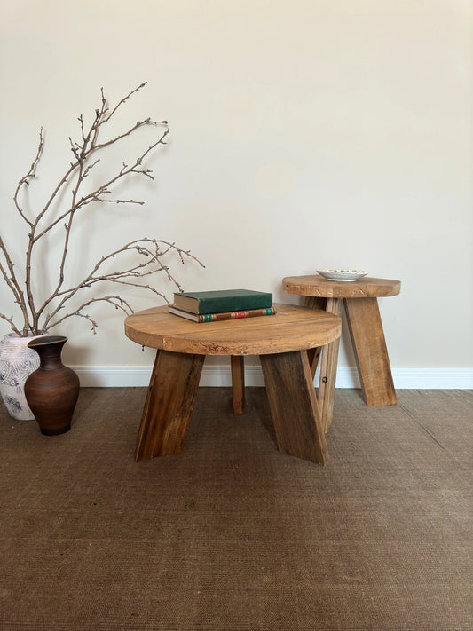 Unique Rustic Round Coffee Table • Reclaimed Wood Side Table